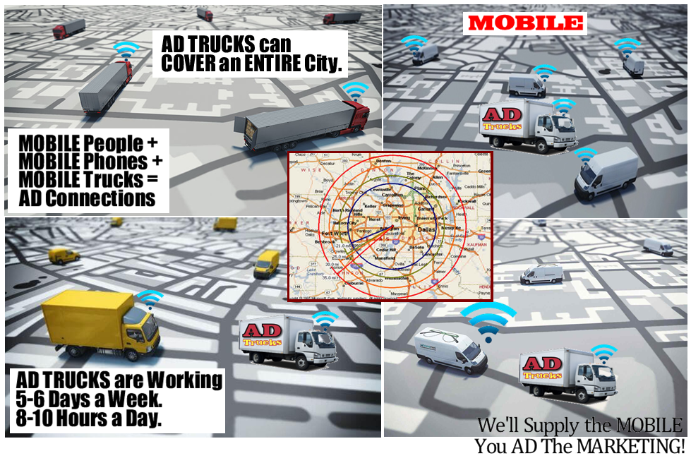 * The price of an Ad Truck is 2 to 3 times cheaper than a Billboard. These AD Trucks drive past dozens of billboards a day!